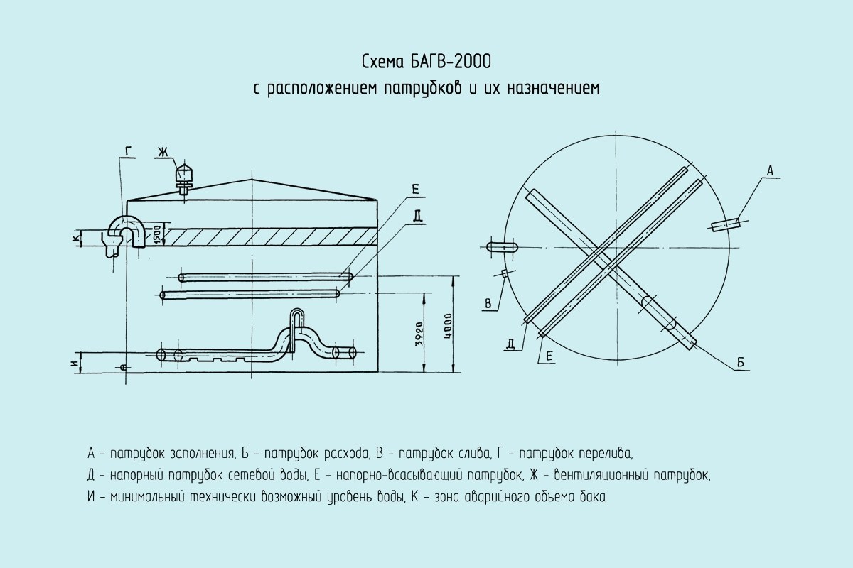 Чертеж Бак аккумулятор горячей воды БАГВ-2000 м3