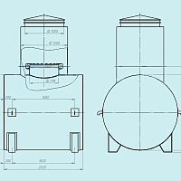 Основная часть корпуса РГСД-5 – цилиндр, сворачиваемый рулоном из единого листа стали, либо свариваемый из отдельных фрагментов. Меньший по диаметру цилиндр размещается в более крупный, гарантируя расстояние между стенками, где размещается вспомогательная жидкость (среда). Конструкция снабжается ребрами жесткости, укрепляющими резервуар. Днища отбираются в зависимости от характеристик эксплуатации – предлагается сферическое, плоское или коническое исполнение.