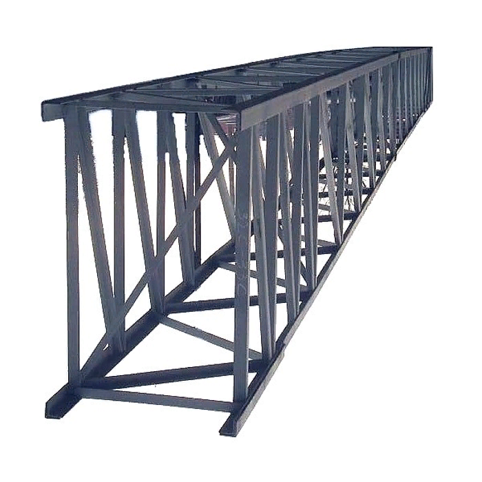 Стойка представляет собой пространственную конструкцию, которая состоит из поясов, планок, диафрагм, опорных пластин с ребрами. Для сборки элементов в единую конструкцию применяется сварка. Для изготовления поясов используется горячекатаный швеллер, для остальных деталей — плоский листовой прокат марок CтЗпc5, 09Г2C или 10XCHД с химическим составом по ГOCT З80-94, 19281-89, 192820-7З. Пояса стоек идут параллельно друг другу, а пояса стоек консольного типа устанавливаются под наклоном. Для монтажа конструкций на фундамент к их нижней части приваривают опорные пластины. Для крепления кронштейнов и консолей в верхней части опор предусмотрены монтажные отверстия