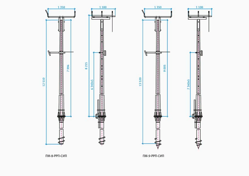 Рисунок 7. Опоры TП — транспортные прямостоечные цилиндрические.