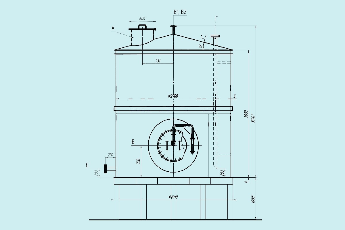 Конструкция резервуара включает технологические патрубки, штуцеры, люк-лаз, смотровой люк. В комплекте идет трубопроводная арматура, с помощью которой осуществляется наполнение и слив рабочей среды. Дыхательные и предохранительные клапаны предотвращают образование избыточного давления и вакуума в газовом пространстве резервуара. В договор поставки включают лестницы и смотровые площадки с перильными ограждениями.